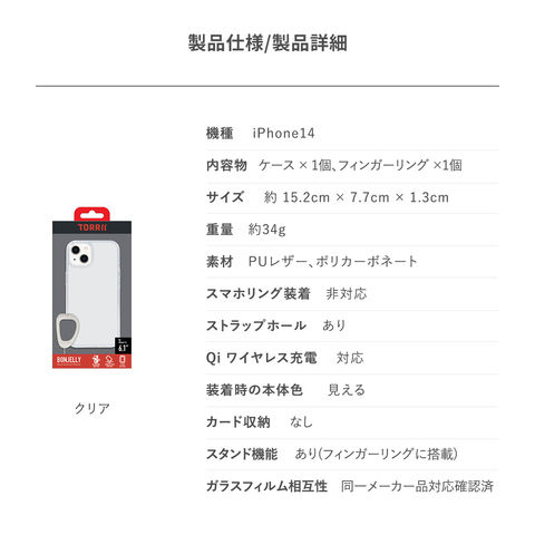 iPhone14 ケース カバー クリア ストラップ / ストラップホール 付 シンプル 透明 ソフト スマホケース [ iPhone 14 アイフォン14 ] Torrii BonJelly