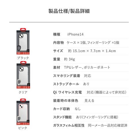 スマホ操作時の落下を防止する、フィンガーリングがセットになったケースです。