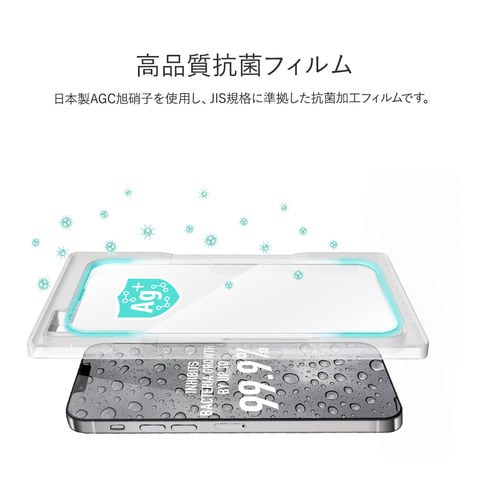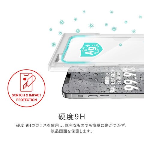 ガラスフィルム表面に抗菌効果を施して、菌の増殖を抑制し、画面を清潔に保つことが出来ます。
