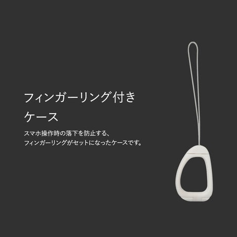 スマホ操作時の落下を防止する、フィンガーリングがセットになったケースです。
