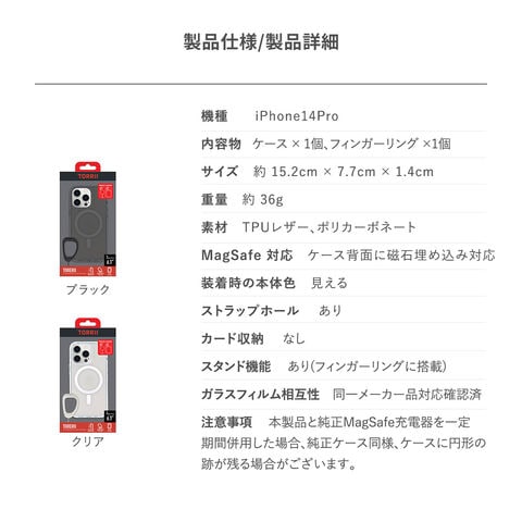 iPhone14 Pro ケース カバー クリア MagSafe 対応 マグネット 付 ストラップ ストラップホール 付 スマホケース [ iPhone14Pro アイフォン14Pro ] Torrii TORERO
