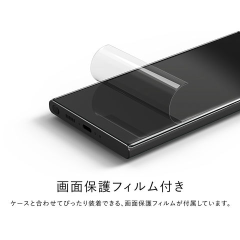 ケースと合わせてぴったり装着できる、画面保護フィルムが付属しています。