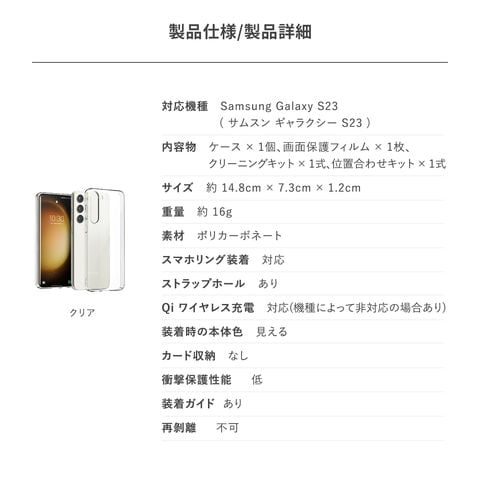 Galaxy S23 ケース 画面保護フィルム 付 シンプル 軽量 極薄 スリム 保護 透明ケース ソフト クリアケース Samsung GalaxyS23 ギャラクシーS23 対応 VRS SkinFit