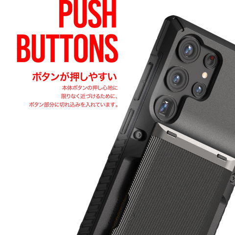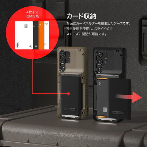 背面にカードホルダーを搭載したケースです。独自技術を使用し、スライド式でスムーズに開閉が可能です。