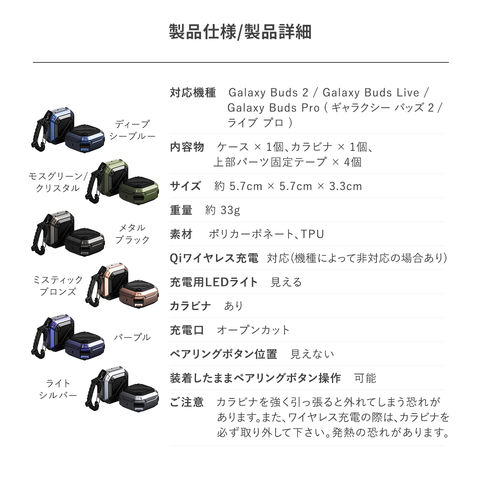 Galaxy Buds2 Pro / Buds 2 / Buds Pro / Buds Live ケース カラビナ付 耐衝撃 傷防止 カバー ギャラクシー バッズ2 他対応 VRS Terra Guard Ultimate