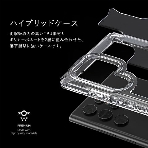 衝撃吸収力の高いTPU素材とポリカーボネートを2層に組み合わせた、落下衝撃に強いケースです。