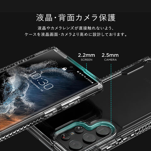 液晶やカメラレンズが直接触れないよう、ケースを液晶画面・カメラより高めに設計しております。