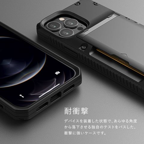 デバイスを装着した状態で、あらゆる角度から落下させる独自のテストをパスした、衝撃に強いケースです。