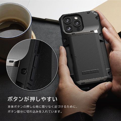 背面にカードホルダーを搭載したケースです。独自技術を使用し、スライド式でスムーズに開閉が可能です。
