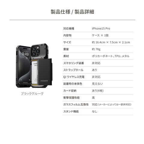 iPhone 15 Pro ケース 耐衝撃 カード収納 スタンド ストラップホール 付 スマホケース Apple iPhone15Pro アイフォン15 プロ 対応 VRS Damda Glide Pro