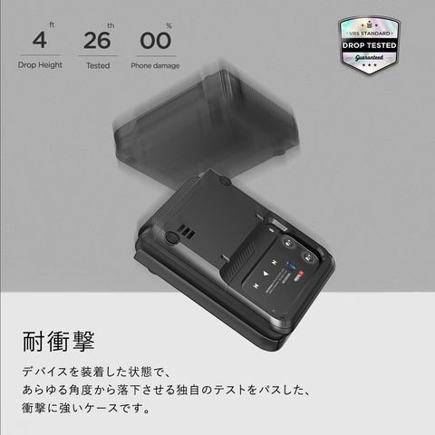 デバイスを装着した状態で、あらゆる角度から落下させる独自のテストをパスした、衝撃に強いケースです。