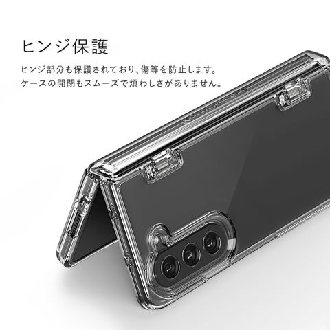 ヒンジ部分も保護されており、傷等を防止します。ケースの開閉もスムーズで煩わしさがありません。