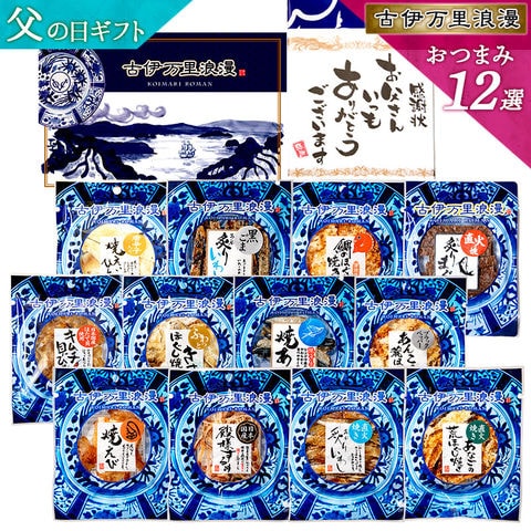 おつまみ ギフト おつまみ12選 古伊万里浪漫 送料無料 常温 【お父さん感謝状のし付】 セット 父の日 プレゼント 詰め合わせ 食品 珍味 海鮮 魚 干物 酒 つまみ お菓子 父 父親 義父 誕生日 還暦祝い 魚介 海産物 いか えび あご いわし 貝ひも