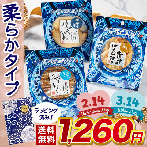 おつまみ ギフト 【ラッピング済】 選べる3点セット 柔らかタイプ 古伊万里浪漫 送料無料 常温 【メール便・ポスト投函】 プチギフト セット プレゼント 詰め合わせ 食品 珍味 海鮮 魚 干物 酒 つまみ 父 誕生日 バレンタイン チョコ以外 1000円 いわし