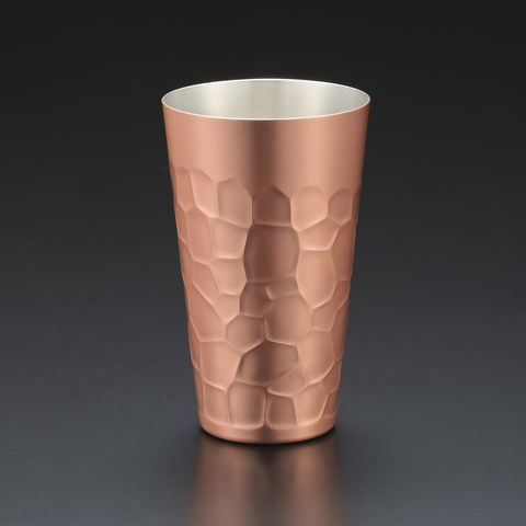 「ものづくり」が盛んな燕三条の地で、伝統的な手法である鎚目加工をリデザインし、熟練の職人の手によって進化させた作品。純銅で作られた鎚目タンブラーです。?職人の手で一つ一つ丁寧に打たれた、独特の大ぶりな鎚目模様が高級感と味わい深さを演出します。