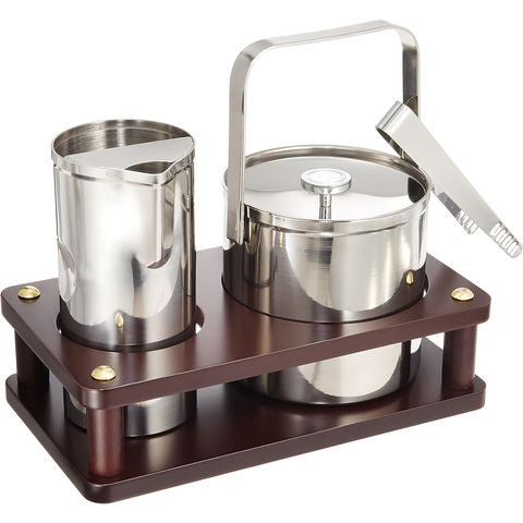 素材・材質:アイスペール・ウォーターポット/18-8ステンレス、アイストング/ステンレス、木台/MDF材、台金属部/軟鋼鉄線・真鍮メッキ仕上