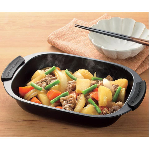素材・材質:本体/ 鉄(アルミメッキ)(内面/フッ素樹脂塗膜加工、外面/シリコーン焼付塗装)、底部/発熱性シリコーンゴム、蓋/鉄(アルミメッキ)(シリコーン焼付塗装)、ハンドル・ツマミ/シリコーンゴム(耐熱温度 250度)