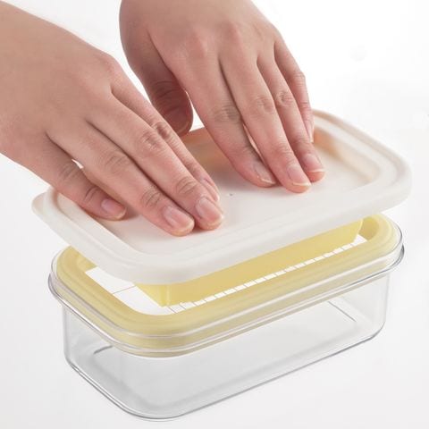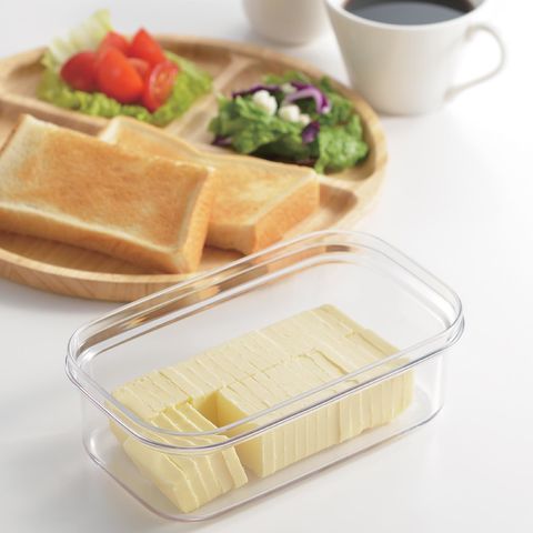 大人気の「カットできちゃうバターケース」にプレミアムな仲間が加わった・フタがピタッと閉まるようになった・ワイヤープレートの強度がアップ、さらに丈夫に・専用バターナイフ付きアルミニウム合金製の専用バターナイフ付き先端がピック状なので、カットしたバターが取りやすく、そのまま塗れるギュッと一押しで、バターを使いやすい約5gの薄切りに簡単カット冷蔵庫にそのまま保存できるホームベーカリーや料理、おかし作りに。計量しやすく便利パンケーキやトーストにのせて、溶けやすい