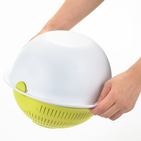 ボウルを傾けてサッと水切り。新発想のザル・ボウルです。