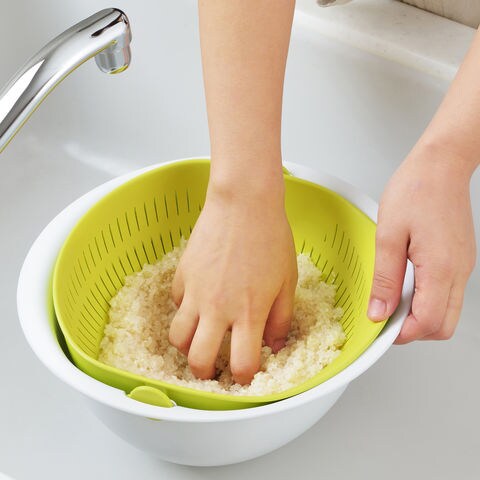 ボウルを傾けてサッと水切り。新発想のザル・ボウルです。