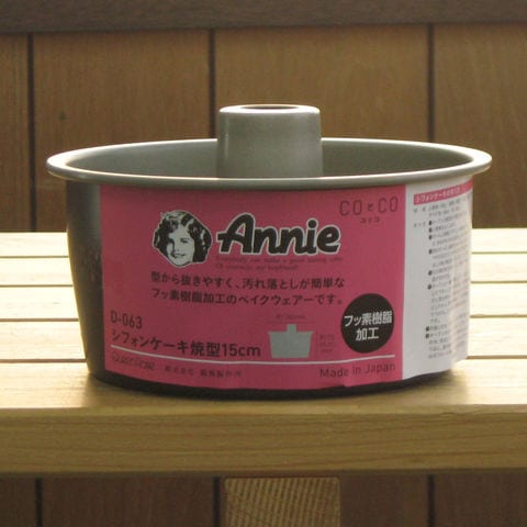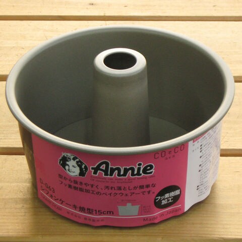●フッ素樹脂加工のシフォンケーキ型のご使用について。フッ素樹脂加工されたシフォンケーキ型をお使いの場合、生地の状態(加える水分量や、粉の量、メレンゲの状態)や焼き時間・温度などにより冷却中にケーキの側面が型から離れてしまい、しぼんでしまう場合がある。これはこびりつきにくく、離型性の良いフッ素樹脂加工の特性。ご了承のうえご使用をお願いする