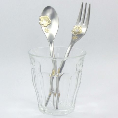 ナガオ 紅梅 コーヒースプーン ヒメフォーク 部分金 2本セット 日本製