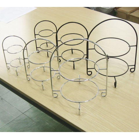 スチールで製造されておりサイズは3サイズ、カラーはクロムメッキとブラックカチオン塗装