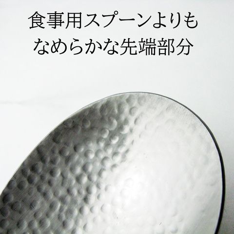 一般的な食事用スプーンよりなめらかな先端部分で食べ物やスープをしっかりとすくうことができる。
