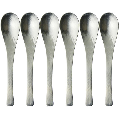 ナガオ 和洋折衷 レンゲスプーン 18cm 艶消 5本+1本 18-8ステンレス 槌目 日本製