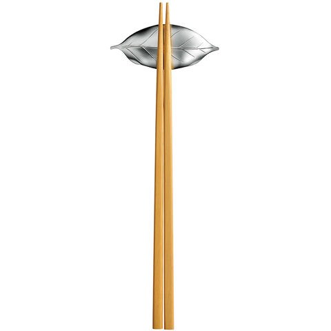 ステンレス製の葉っぱのやわらかな曲線、うねり、薄さを表現した銀色に輝く葉枝おき。箸置き、ナイフレスト、スプーンレスト、フォークレストに