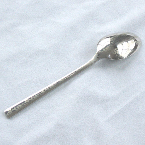 一見するとふつうの高品質なカトラリーだが、裏側全面にレーザーで総柄が入っている。