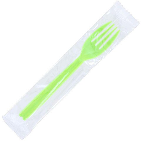 業務用の使い捨てタイプのシンプルなフォーク。1本1本が個包装で使用毎に開封できるので衛生的。ブラック・グリーン・オレンジのカラフルなカラーが他の使い捨て食器とは一線を画す。