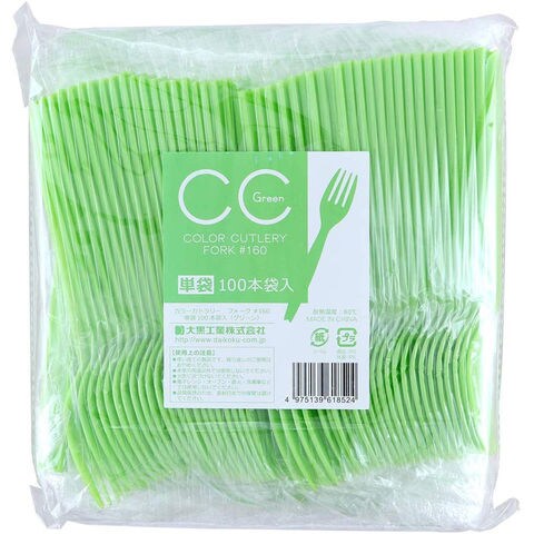 ナガオ 使い捨てフォーク 16cm グリーン 個別包装 100本セット 200840