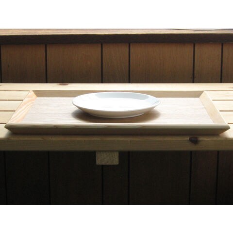 角が緩やかなため、食事を運ぶおぼんとしての役割のほか、ランチョンマットのようにして使うことができる。