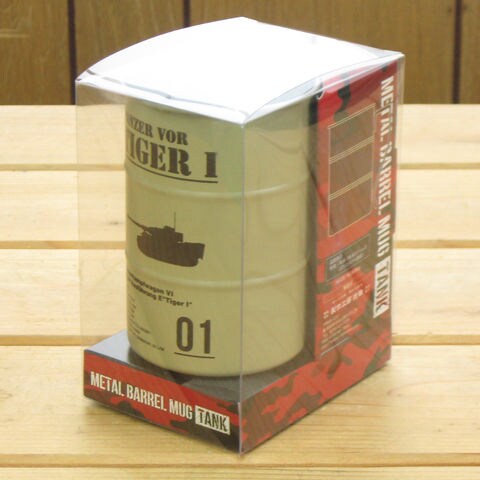 タイガーI型戦車をシルク印刷したドラム缶マグ(400ml)。