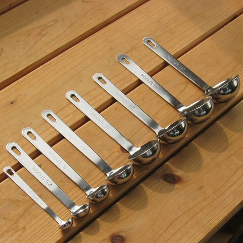 サイズバリエーションは1ccから30ccまで全8種類と、調理で必要な計量を網羅している。