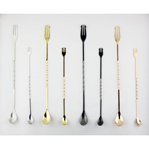 カクテル作りにかかせないバースプーン。おしゃれなマドラーがわりでもいい感じ。ホームユースにちょうどいい250mmのサイズ。18-0ステンレスの本体にピンクゴールドメッキを施した華やかな装い。製造はステンレス加工の産地、新潟県 燕三条。企業ゴミ削減の為、商品外装は袋入れのみとなる。