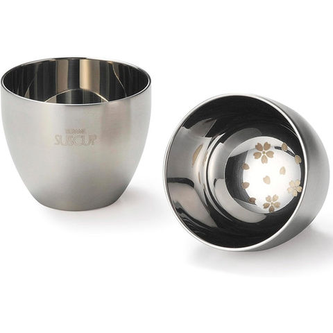 ナガオ 燕三条 ぐい呑み ペア セット 桜鋼 直径6×高さ5cm 18-8ステンレス二重構造 日本製