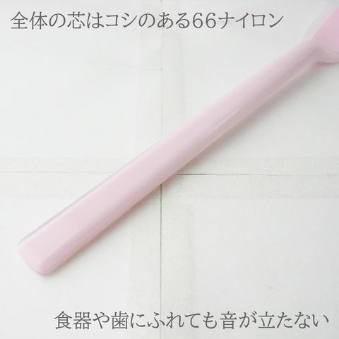 芯はコシのある66ナイロンでつくられているので、すくう時に器の隅々までぴったりと沿うことができて取り残しがありません。