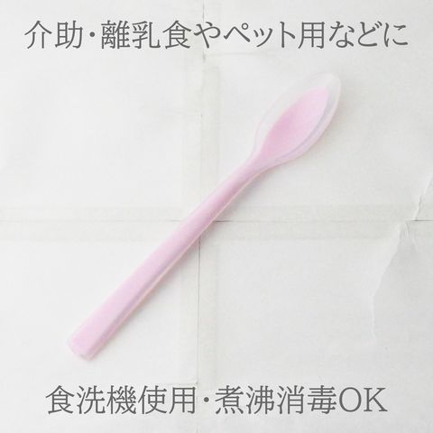 金属のスプーンと比べて、食器や歯などにふれても音が立たず食べさせやすい。