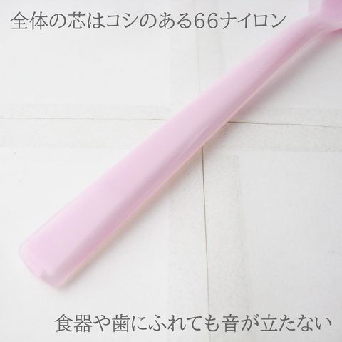 芯はコシのある66ナイロンでつくられているので、すくう時に器の隅々までぴったりと沿うことができて取り残しがありません。