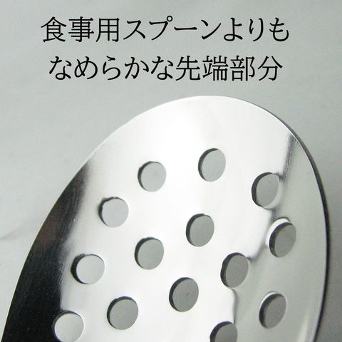一般的な食事用スプーンよりなめらかな先端部分で食べ物やスープをしっかりとすくうことができる。