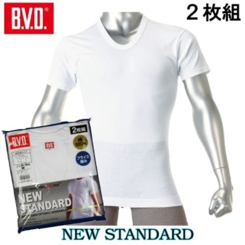 BVD NEW STANDARD U首半袖Tシャツ フライス編み 2枚組 EY704