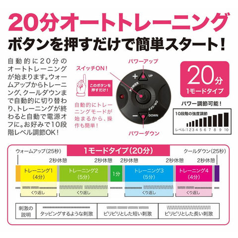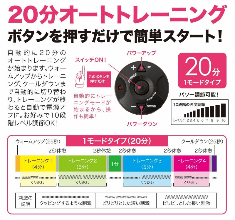 電源を入れ、20分オートトレーニングボタンを押すだけで簡単スタート!