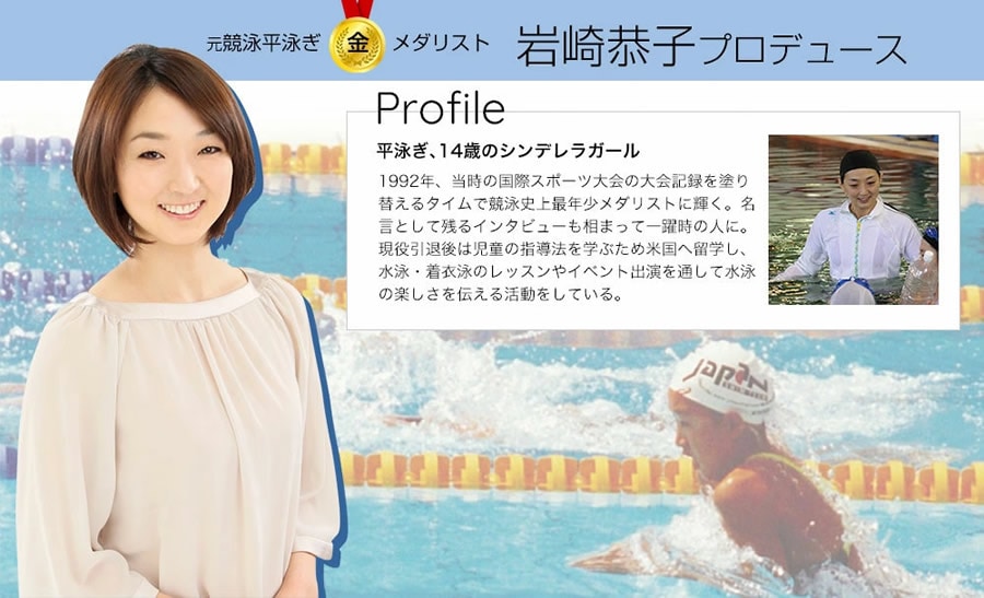 元競泳平泳ぎ金メダリスト岩崎恭子プロデュース。岩崎恭子背面ケア健康メソッドウエア。