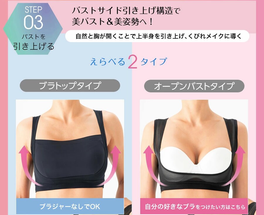 バスト下からしっかり支えて引き下げるオープンバストタイプ。