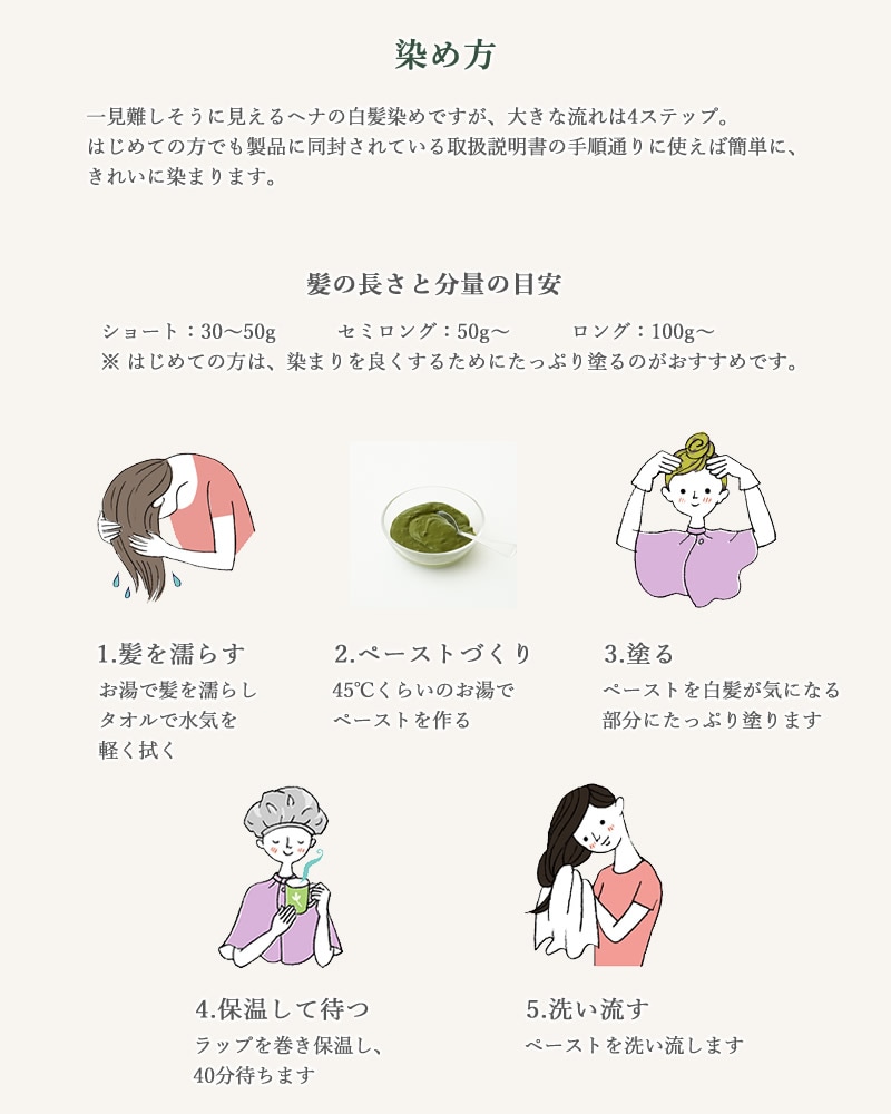 ※はじめての方は、染まりを良くするためにたっぷり塗るのがおすすめです。