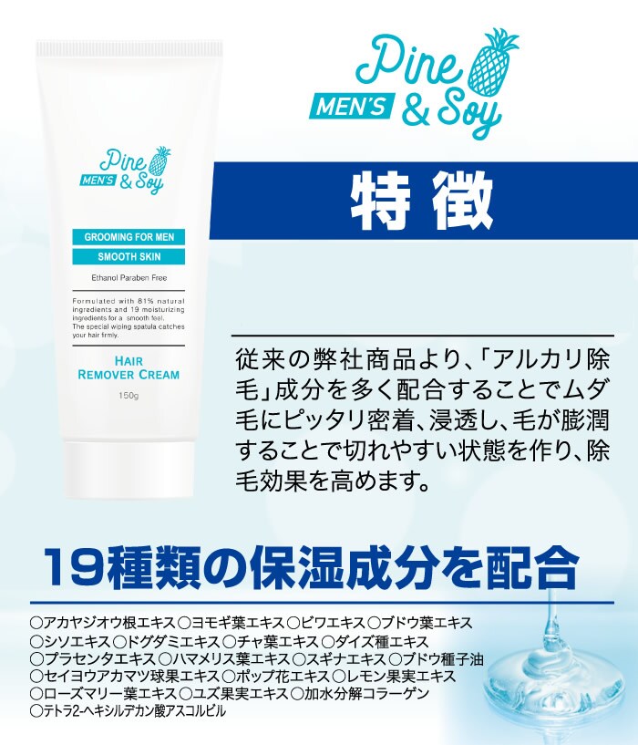 【医薬部外品】Pine&Soy パイン&ソイ メンズヘアリムーバークリーム 150g 除毛 ムダ毛対策 メンズ 男性用 男女兼用 パイナップル 豆乳