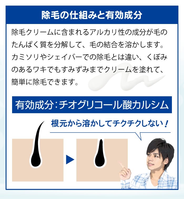 従来の製品より「アルカリ除毛」成分を多く配合することでピッタリ密着。