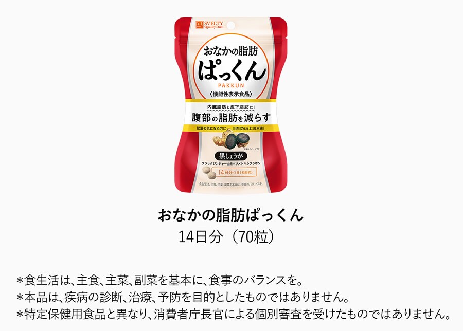 スベルティ おなかの脂肪ぱっくん 黒しょうが 70粒 機能性表示食品 SVELTY お腹 ダイエット 内臓脂肪 ブラック ジンジャー 黒生姜